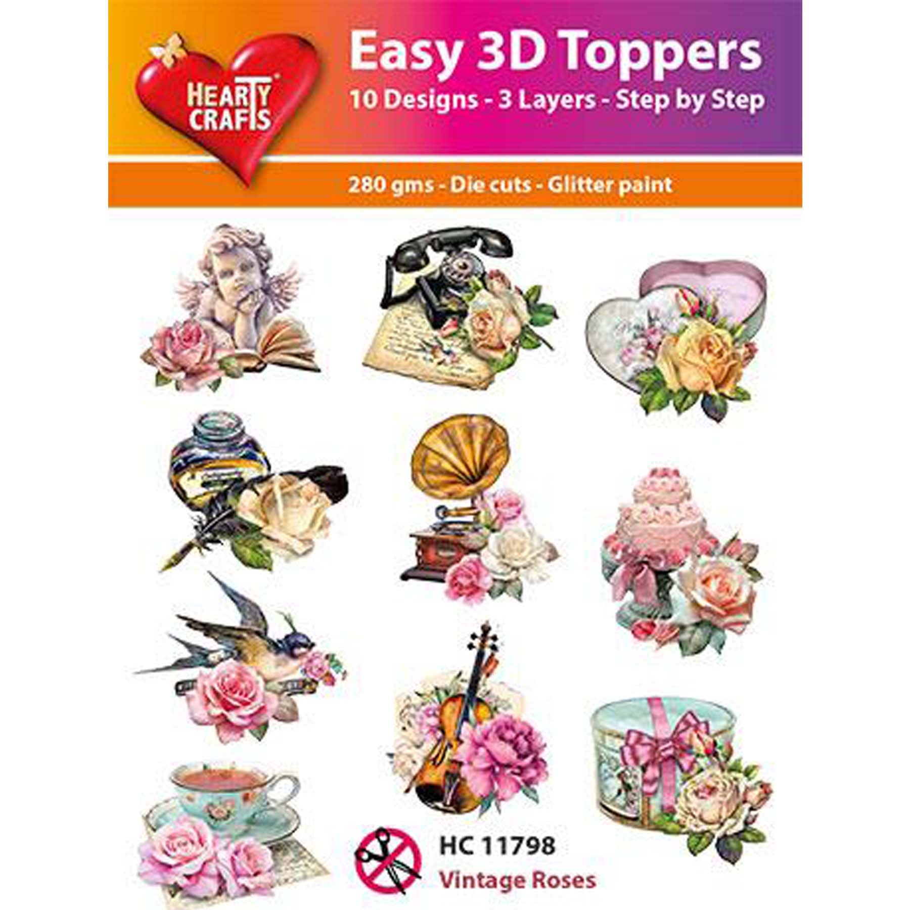 Jedes Design besteht aus 3 gestanzten Teilen, die mit 3D-Pads geschichtet werden, um dimensionale Aufsätze zu erstellen, die dann zu deinen Karten, Scrapbook-Seiten und vielen anderen Projekten hinzugefügt werden können. Die Klebepads sind nicht im Set enthalten.