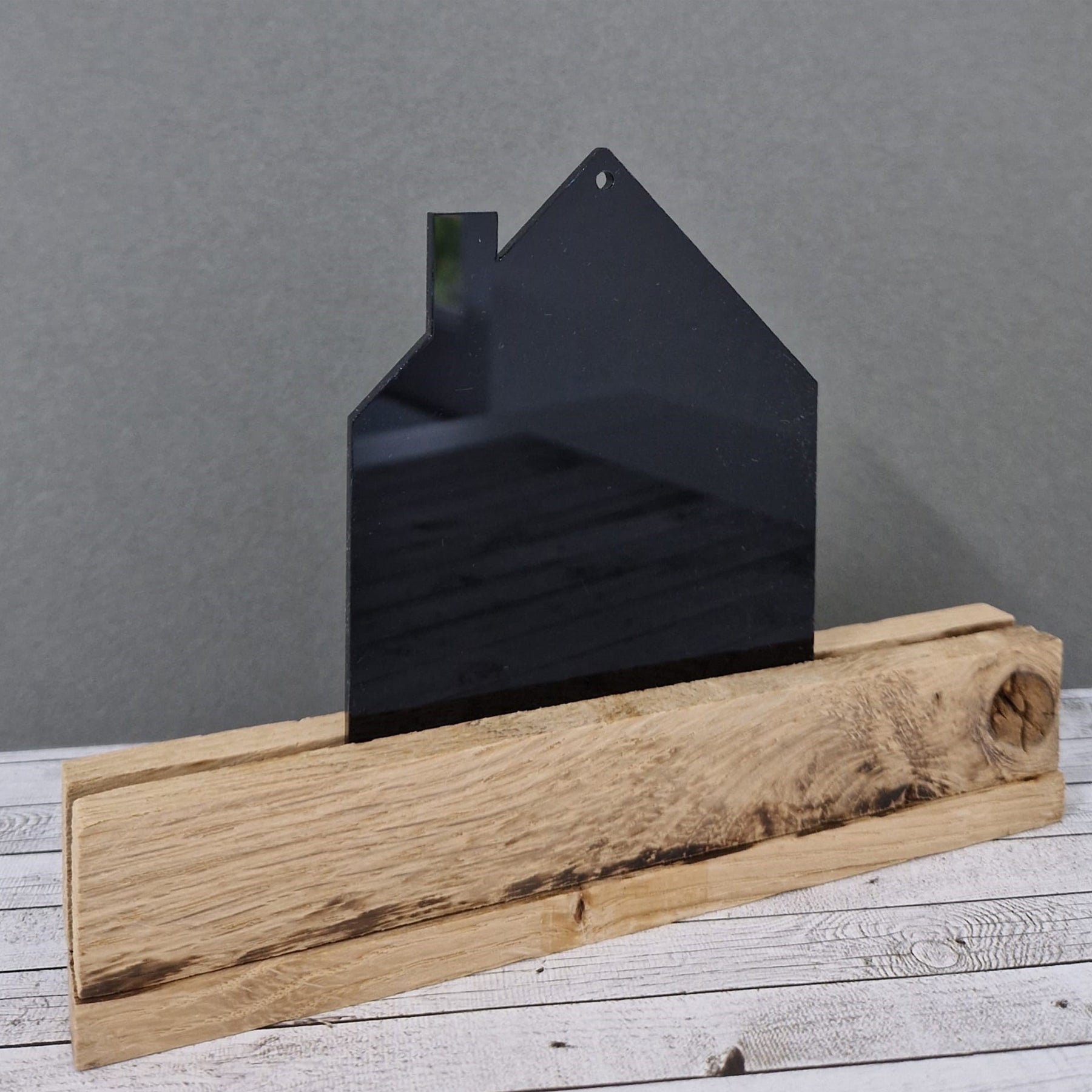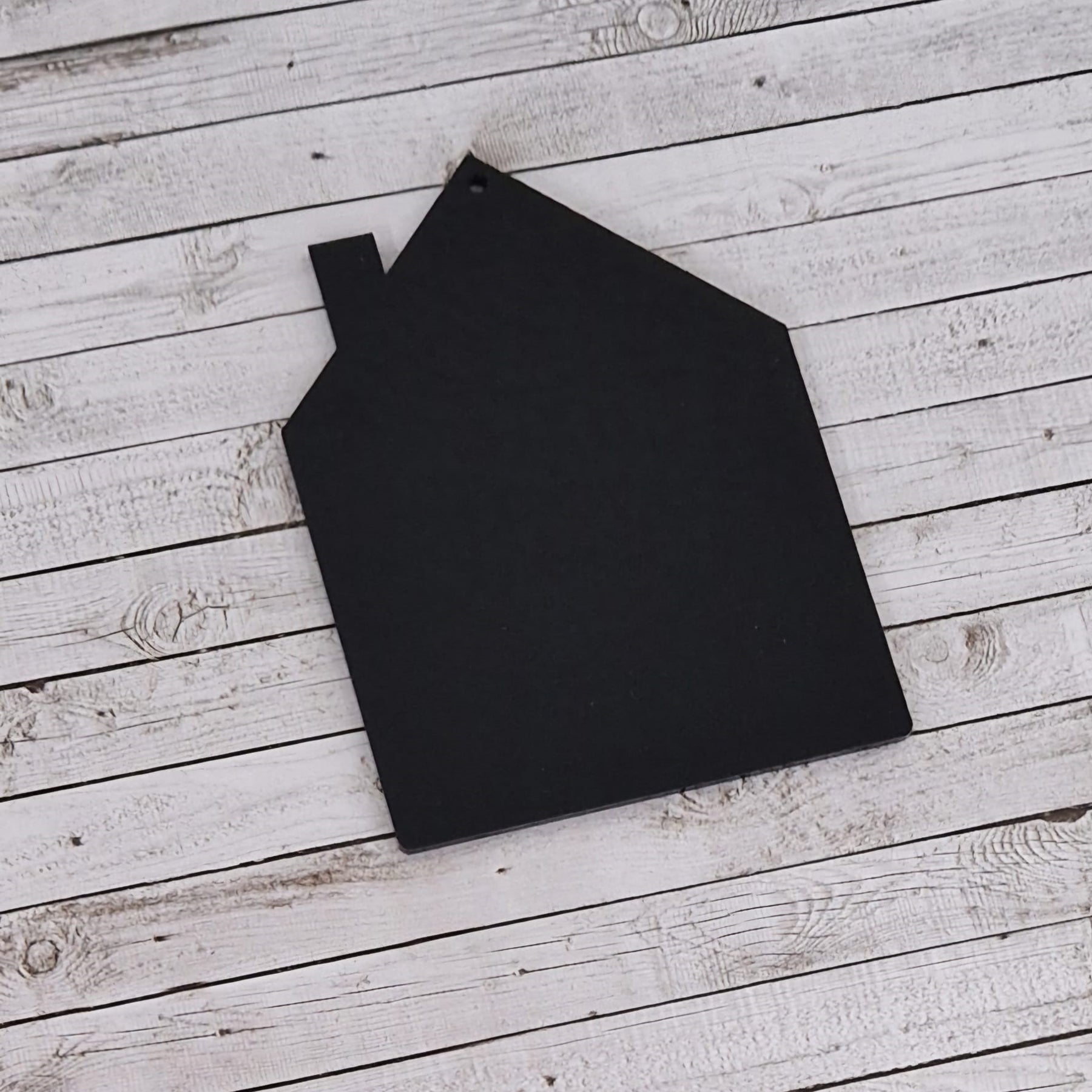 Dieses kleine Acryl Häuschen in Schwarz ist zum Aufhängen gedacht - die Bohrung ist bereits vorhanden. Du kannst sie mit Folie, Rub Ons und vielem mehr verzieren.