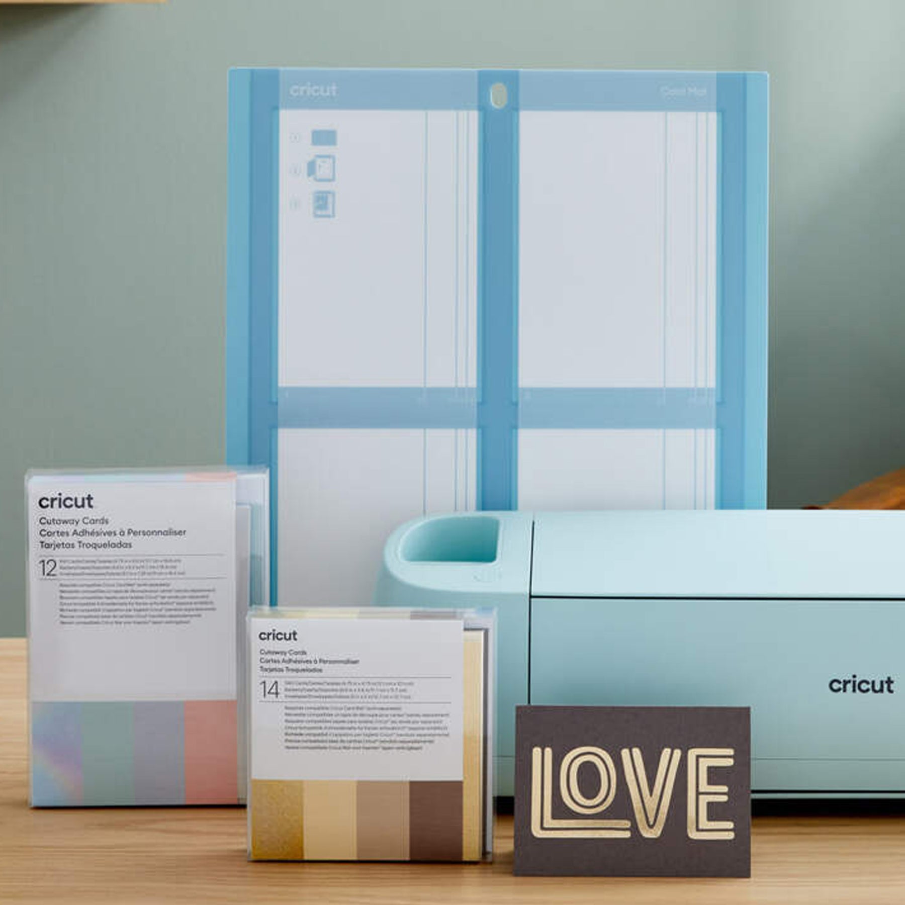 Mit den Cutaway Karten für die Cricut Explore oder Maker Schneidemaschinen kannst Du schnell und einfach personalisierte Karten mit grosser Wirkung anfertigen. Das geniale klebstofffreie Design macht zweifarbige Karten mit Tiefenwirkung möglich - ganz einfach und ohne Schmiererei. Schneide komplexe und aussagekräftige Text- und Bildelemente auf die Vorderseite der Karte, damit die schöne Farbe der unteren Schicht sichtbar wird.