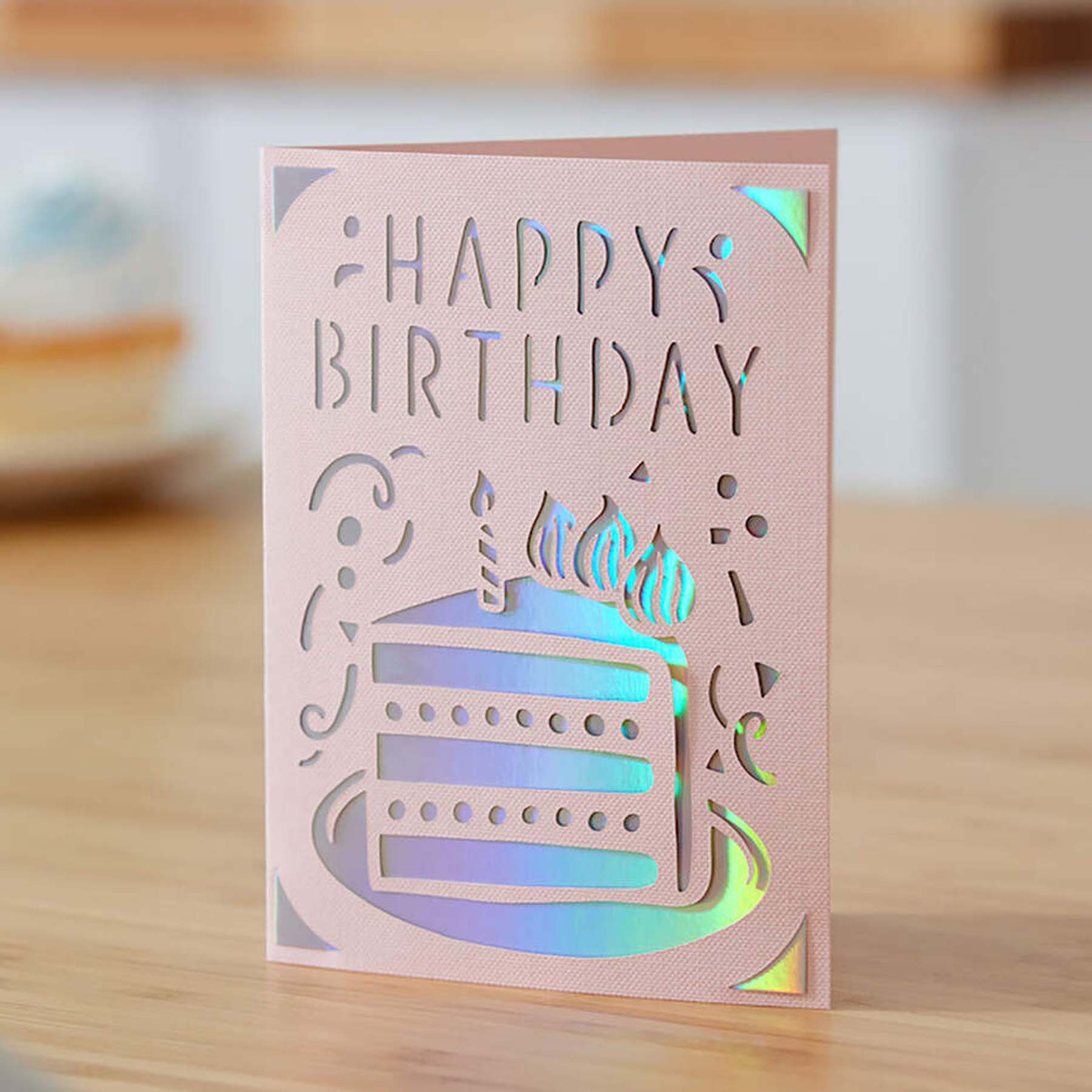 Mit den Einsteckkarten für die Cricut Joy Schneidemaschine kannst Du schnell und einfach personalisierte Karten mit grosser Wirkung anfertigen. Das raffinierte klebefreie Design ermöglicht die Herstellung von zweifarbigen Karten ohne grossen Aufwand. Schneide komplexe und aussagekräftige Text- und Bildelemente auf die Vorderseite der Karte, damit die schöne Farbe der Einlage durchscheinen kann.