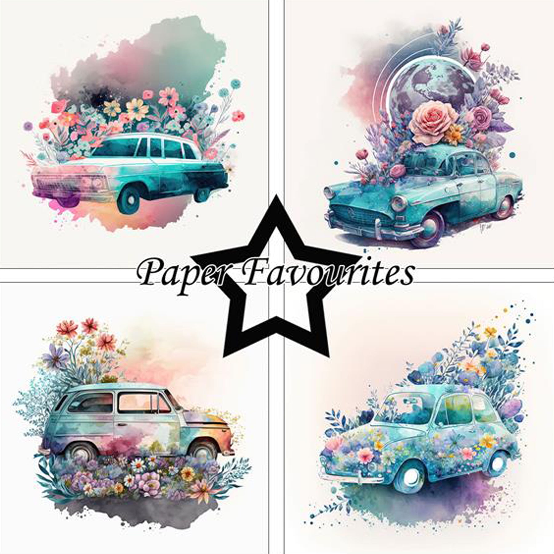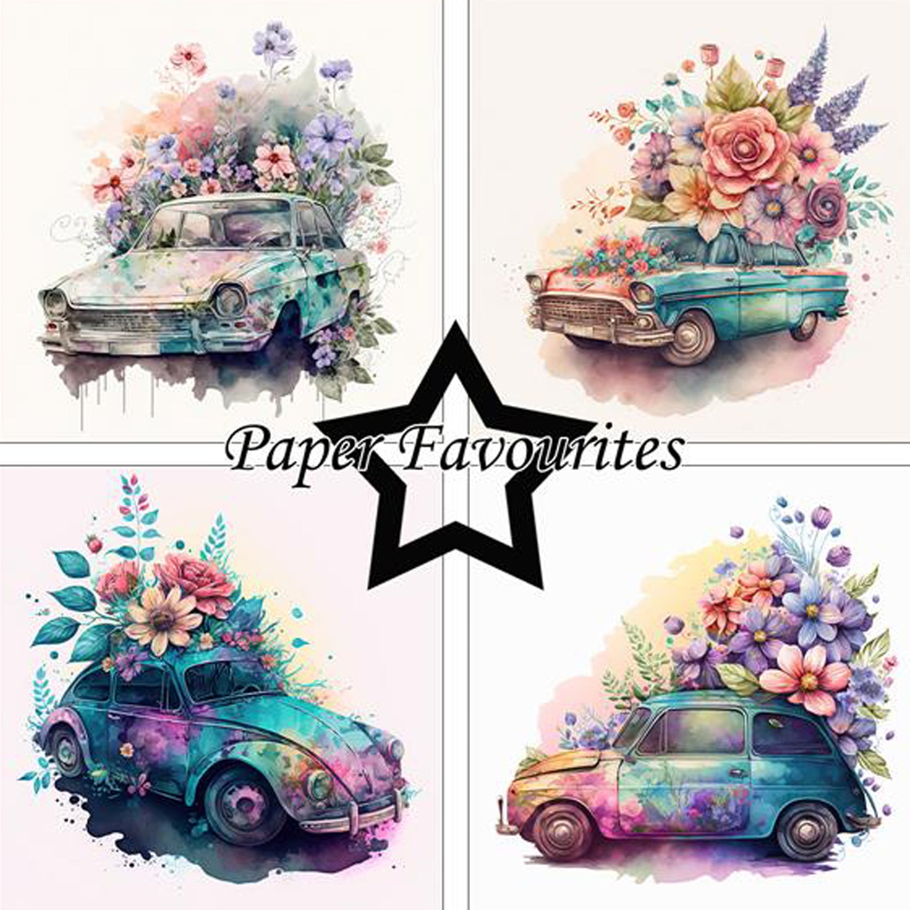 Paper Pad 200 g/m2 - 15 cm x 15 cm - Floral Cars