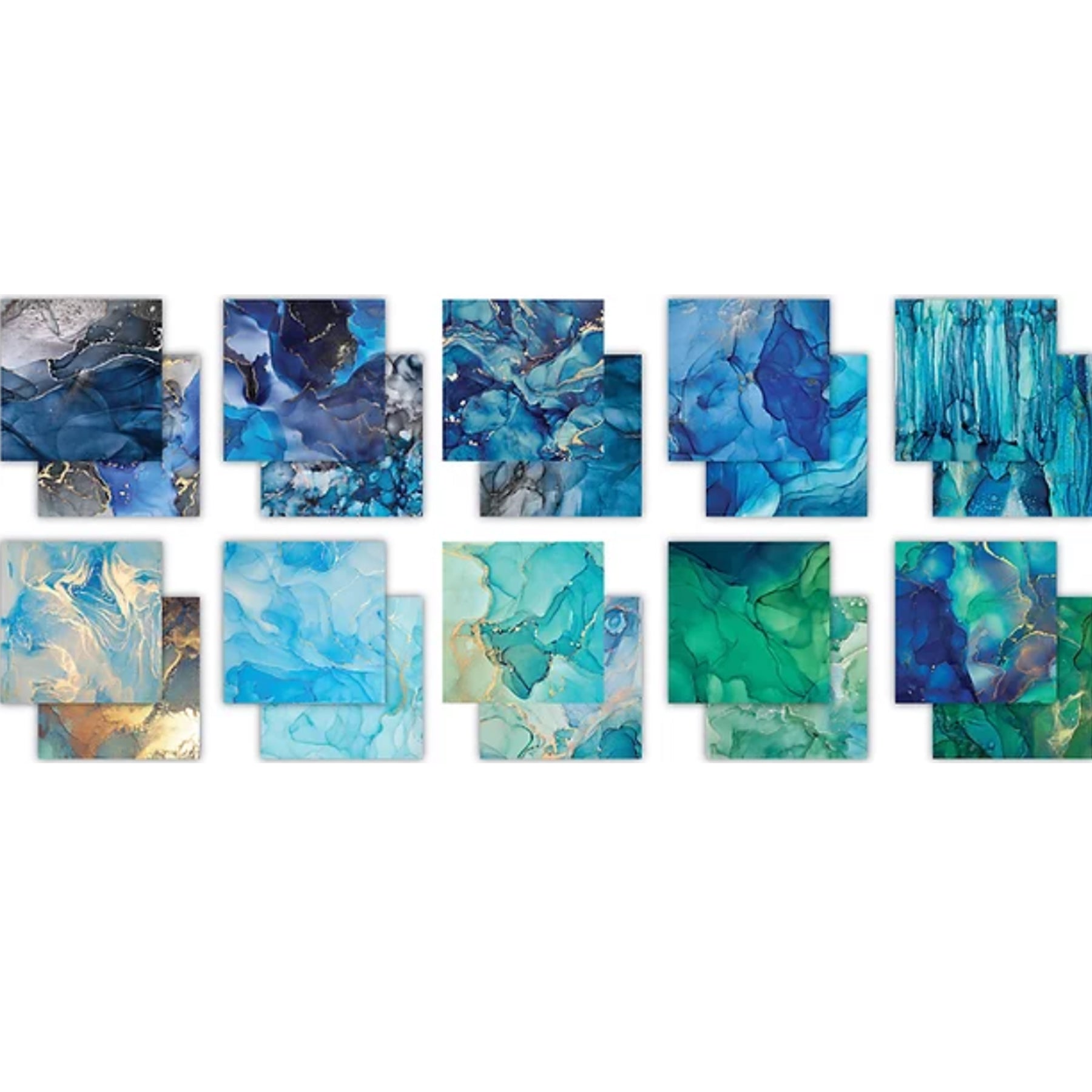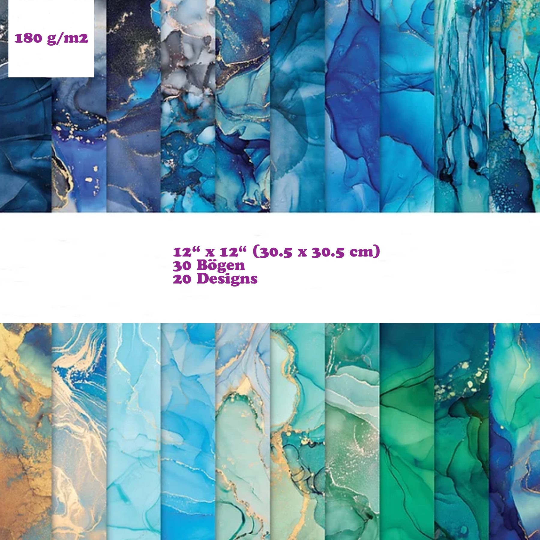 Dieses Designpapier reicht von tiefem Blau bis hin zu Türkisblau und Smaragdgrün und erschaffen unglaublich schöne Farb-Kombinationen. Es ist eine traumhafte Basis für spezielle Karten, Scrapbooking und Verpackungen. Die beidseitig bedruckten Papiere harmonieren wunderbar in den Farben, so dass die Vorderseite, perfekt zur Rückseite der Designpapiere passt.