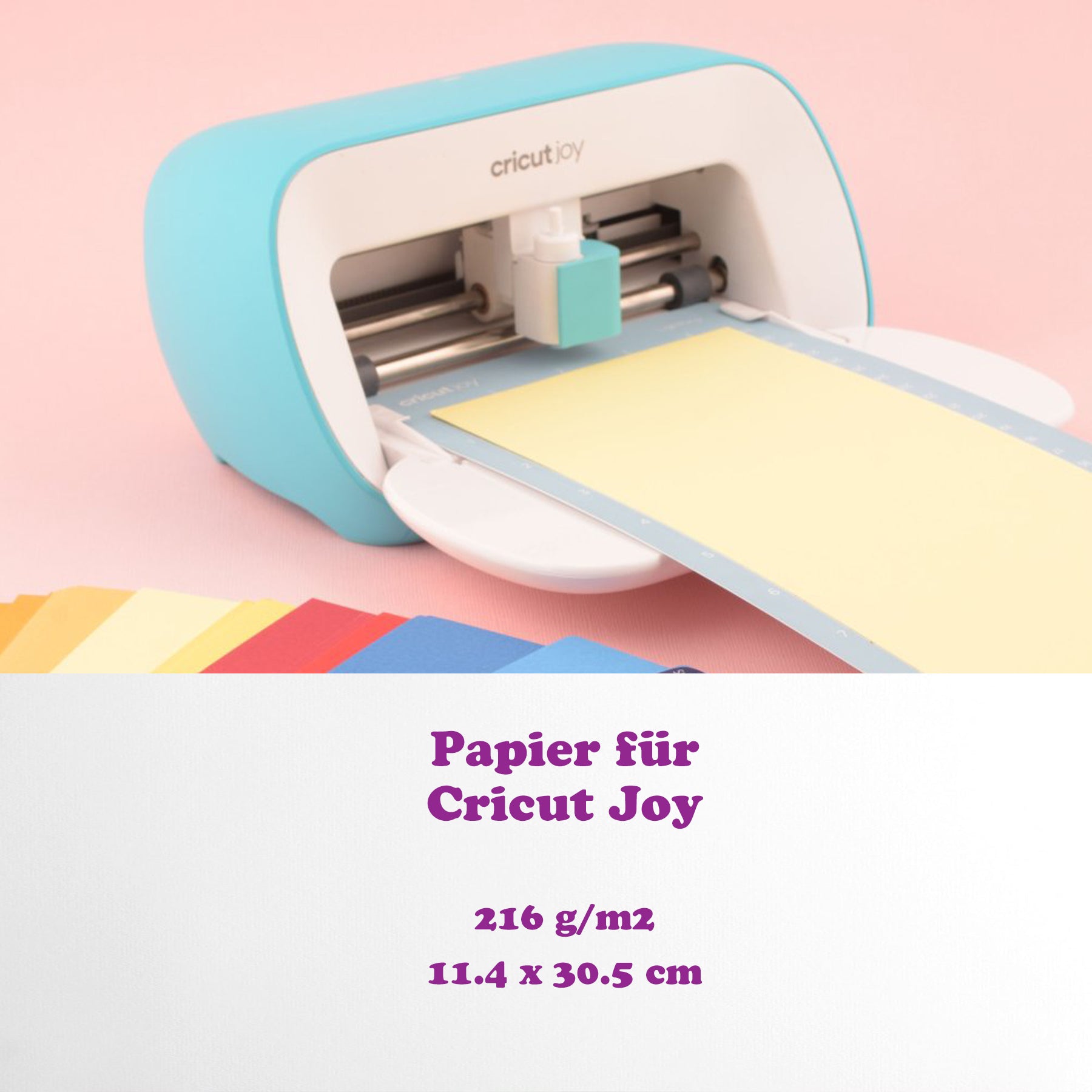 Mit diesem gut schneidbaren Uni Tonkarton / Bastelpapier 4.5’’ x 12’’ (11.4 cm x 30.5 cm) hast Du gleich die korrekten Masse, wenn Du mit dem Cricut Joy kreativ bist. Zuschneiden von Cardstock fällt weg, weil diese Papiere perfekt auf die lange Schneidematte vom Joy passen.